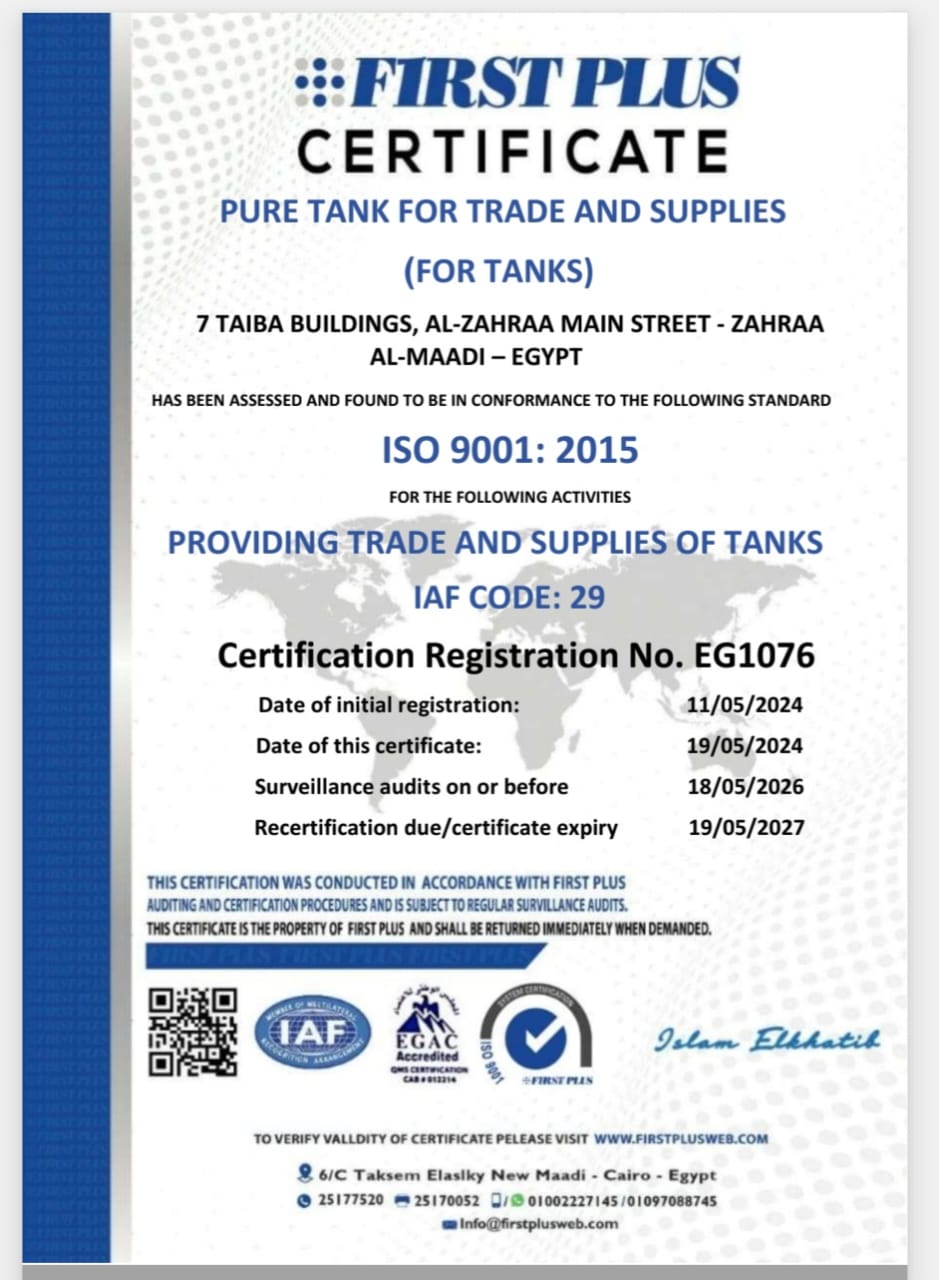 تتمتع شركة بيور تانك بخبرة طويلة في مجال صناعة الخزانات، مما يجعلها اسمًا موثوقًا ومعترفًا به في السوق.